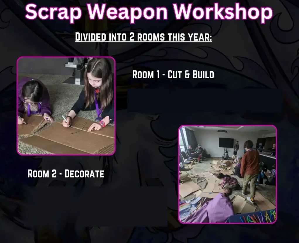 To avoid long lines and waiting lists, we’re dividing it amongst two seperate rooms to make sure everyone can get in and create their own fantasy weapon.