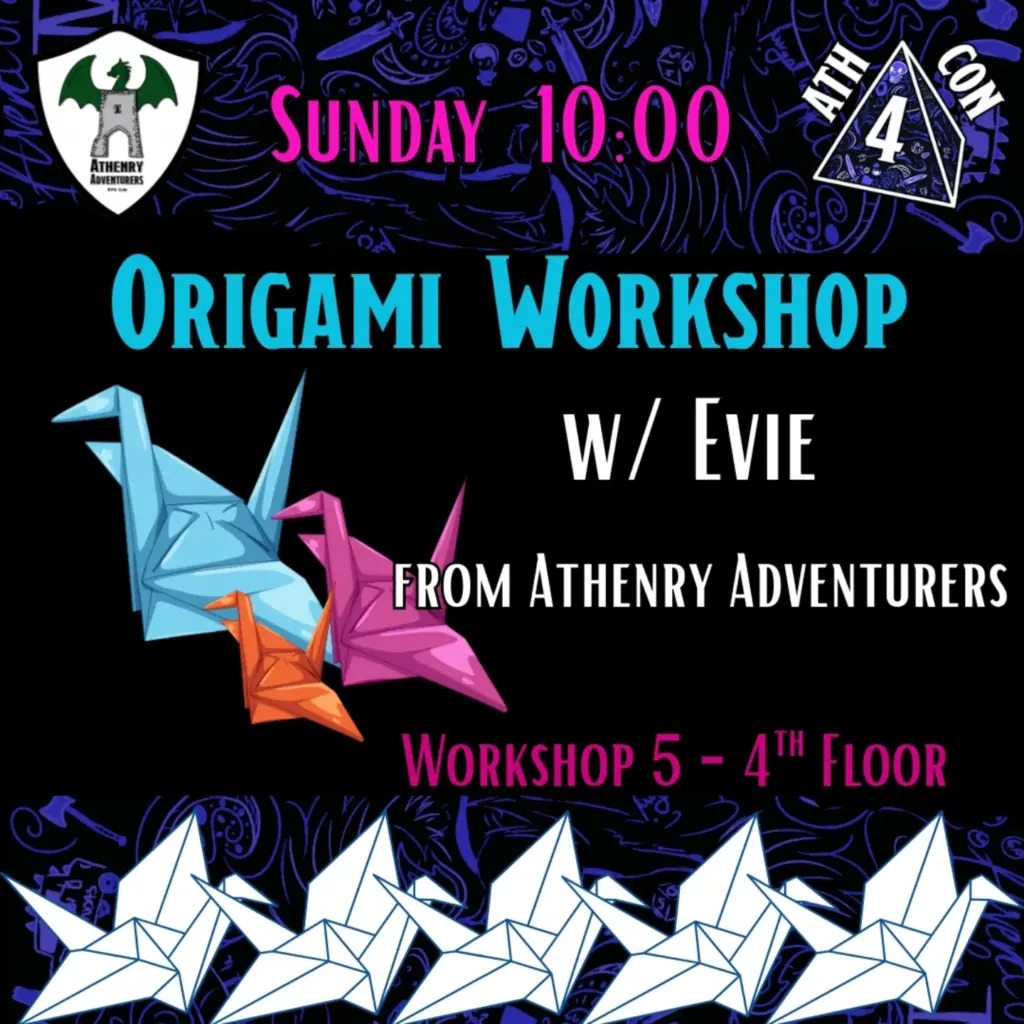 Evie, a member of @athenryadventurers, is a wiz with Origami and we were delighted that she wanted to host her own workshop at @athventurecon this year! So if you fancy learning about this ancient art of folding paper, head on up to the 4th floor on Sunday!